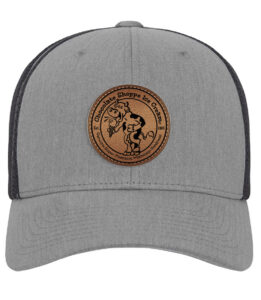A limited-edition gray baseball-style hat with Chocolate Shoppe Ice Cream pleather logo patch and mesh back with adjustable snapback closure.